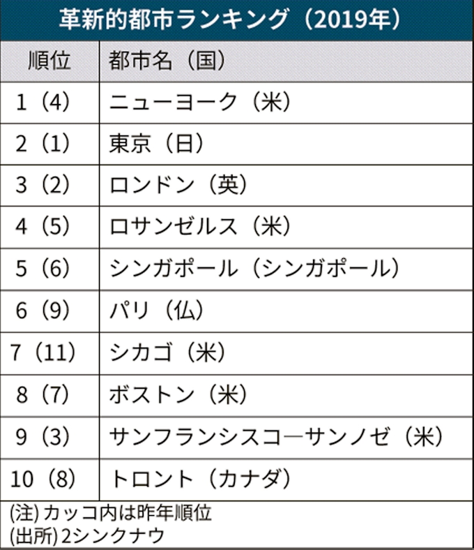 革新的都市ランキング Nyが首位 東京は2位に後退 日本経済新聞