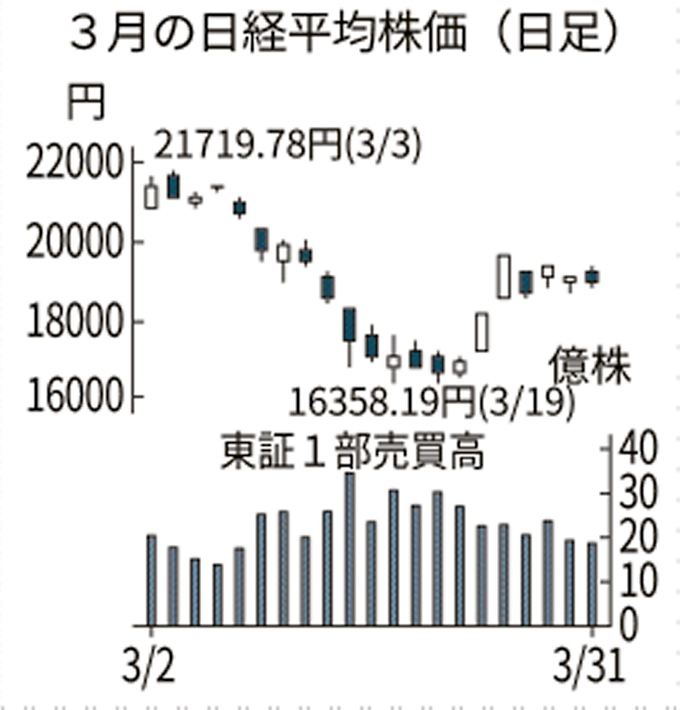 日経平均株価 3月は10 5 2225円下落 日本経済新聞