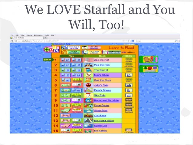 Starfall motivates through positive reinforcement and play. Read honest and unbiased product reviews from our. Learn to Read In the “Learn to Read” level, one of the activities allows learners to create words by dragging different consonants to different word families to make words to match.